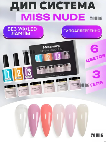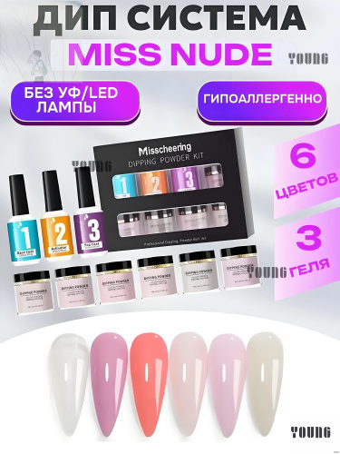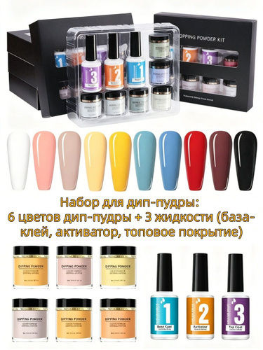 Дип система для ногтей для моделирования гель пудра, Набор для маникюра с дип-пудрой-6 оттенков дип-пудры + 3 флакона жидкости (база-клей, активатор, топовое покрытие)