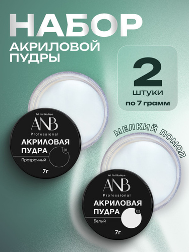 ANB Professional, Акриловая пудра для ногтей. Набор прозрачная и белая (01,02) по 7 г