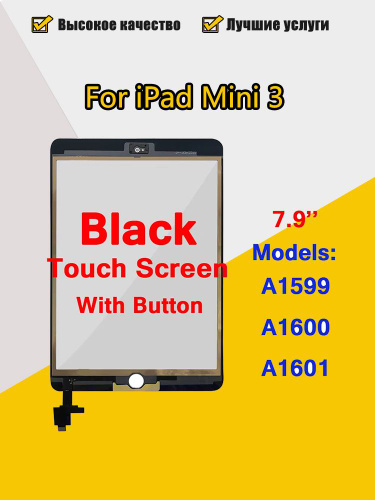 Экран для iPad mini 3 сенсорное стекло (тачскрин) для замены, модели A1599 A1600, с комплектом для ремонта чёрный