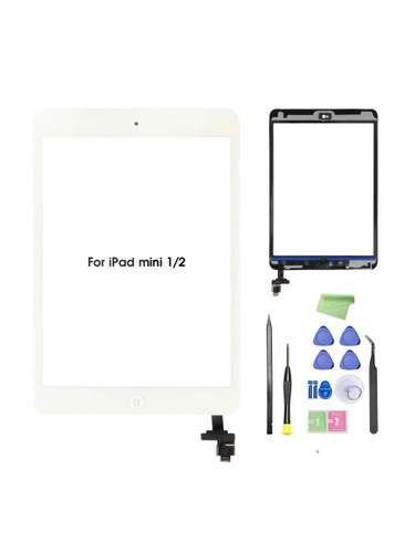 Экран для iPad mini 1 / iPad mini 2 7.9" сенсорное стекло (тачскрин) для замены, модели A1432 A1490 A1489 A1491, с комплектом для ремонта - Белый