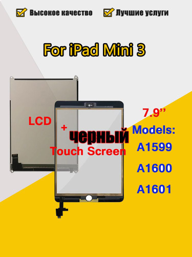 Дисплей для iPad Mini 3 A1599 A1600 A1601 в сборе с тачскрином,Черный
