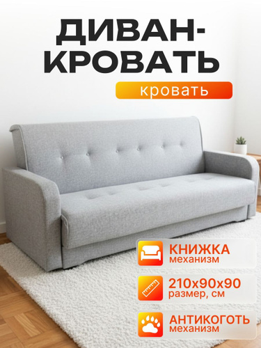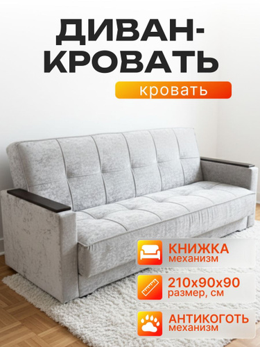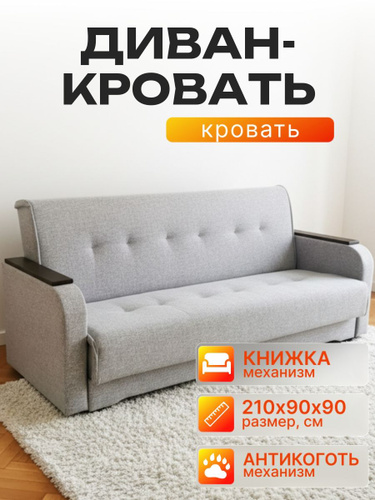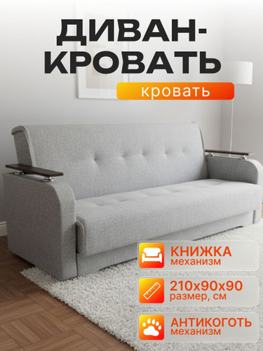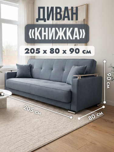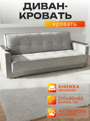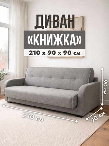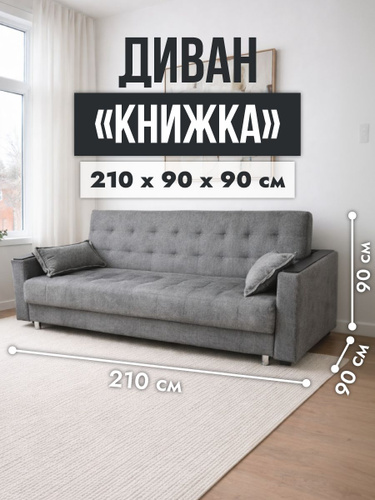Диван раскладной, механизм Книжка, 210х80х90 см,серый
