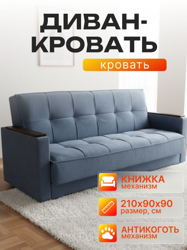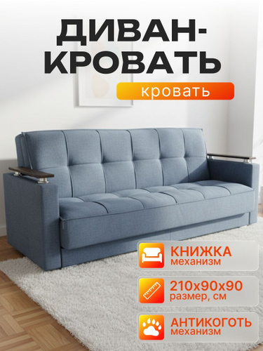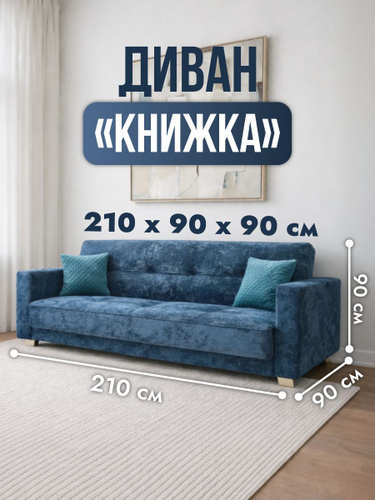 Диван раскладной, механизм Книжка, 210х80х90 см,синий