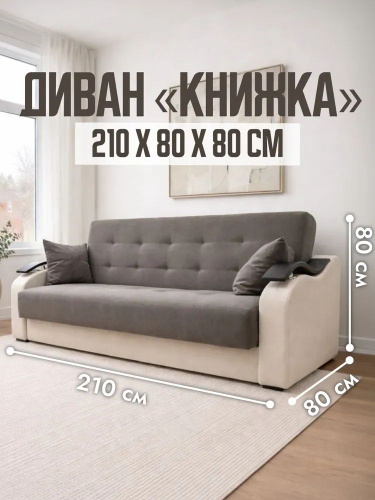 Диван раскладной, механизм Книжка, 210х60х90 см,светло-бежевый, светло-серый