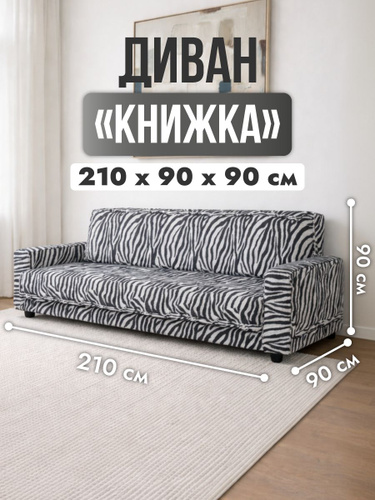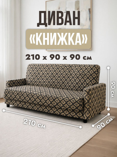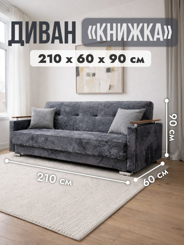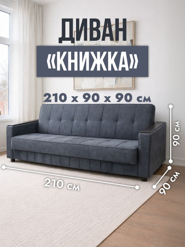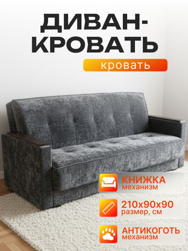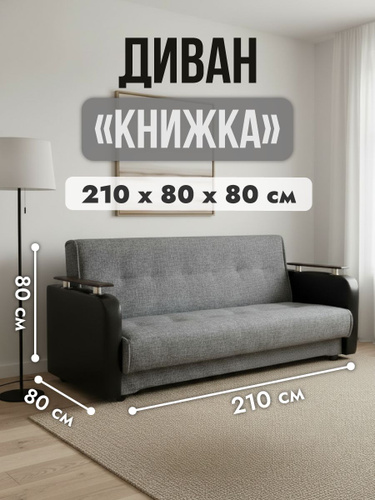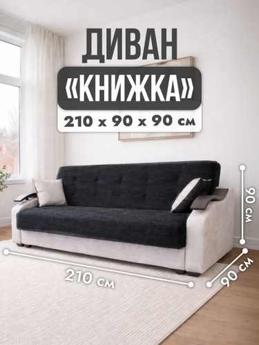Диван раскладной, механизм Книжка, 210х90х90 см,черно-серый