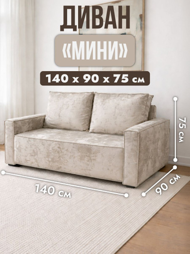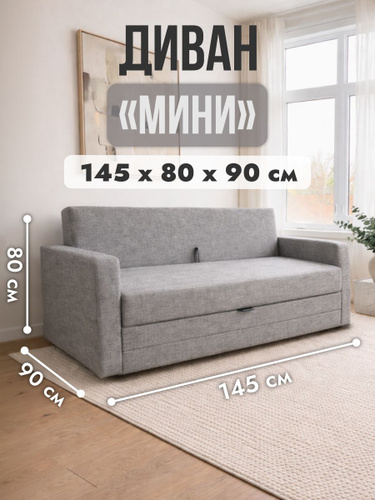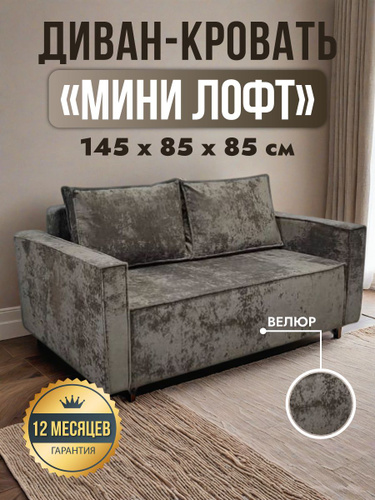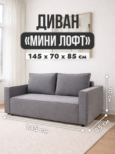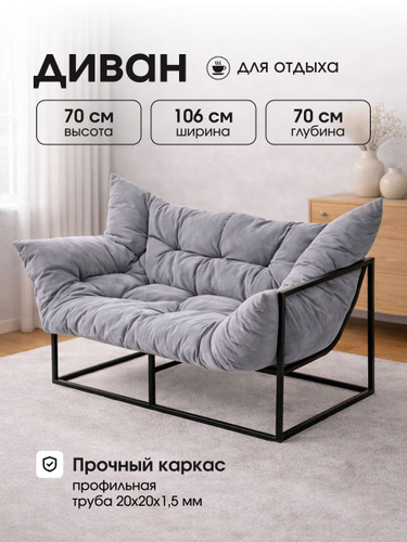 Мини диван для отдыха прямой в стиле лофт, ткань подушка велюр серый