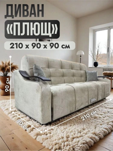 Диван раскладной, механизм Книжка, 205х90х90 см,светло-бежевый