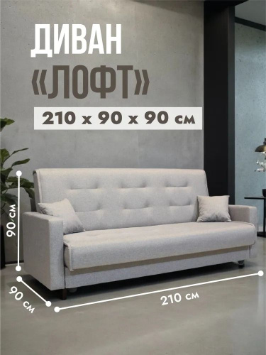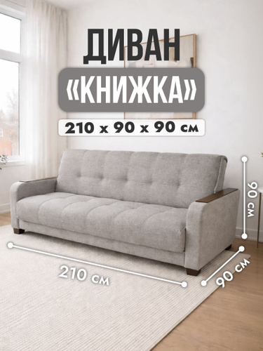 Диван раскладной, механизм Книжка, 210х60х90 см,светло-серый