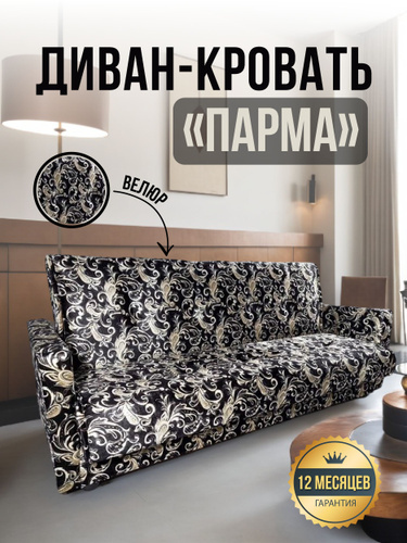 Прямой диван, механизм Книжка, 205х100х100 см,черный
