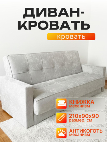 Диван раскладной, механизм Книжка, 205х87х87 см,серебристый