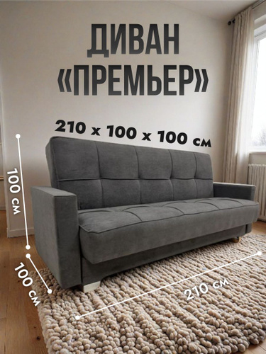 Прямой диван, механизм Книжка, 210х100х100 см,серый