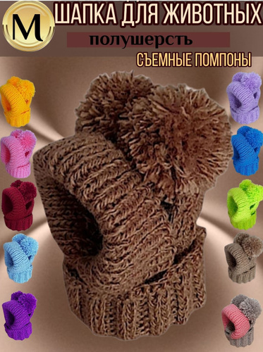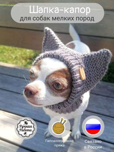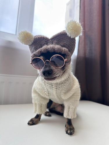 Шапка для собак мелких пород и кошек вязаная зимняя, одежда для животных