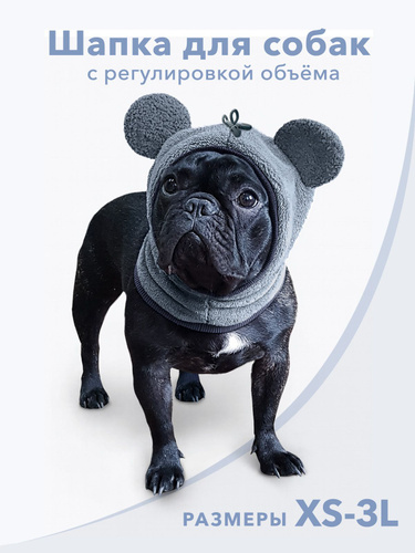 Шапка для собак мелких пород с пространством для ушей, серая, размер М