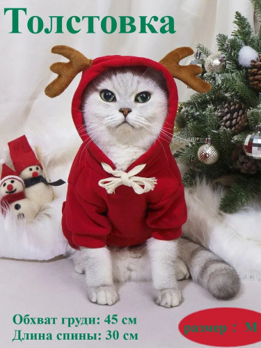 Новогодний костюм для кошек и собак, праздничный наряд с шапкой, красный, размер M
