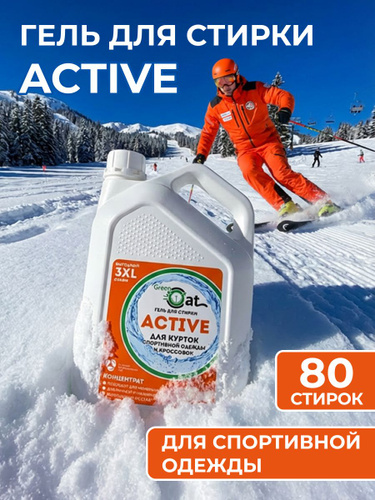 Гель для стирки спортивной одежды, кроссовок, курток пуховиков, белья концентрированный Green Cat ACTIVE 3 л , жидкий порошок
