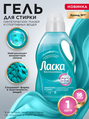 Гель для стирки Ласка Восстановление Синтетика и Спорт, 1л (16 стирок)