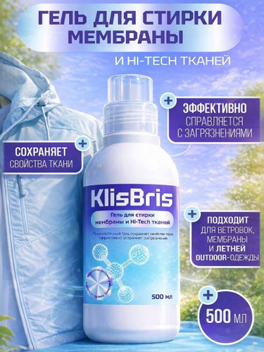 Гель для стирки мембранных тканей и мембранной одежды KlisBris, 500 мл для курток и пуховиков
