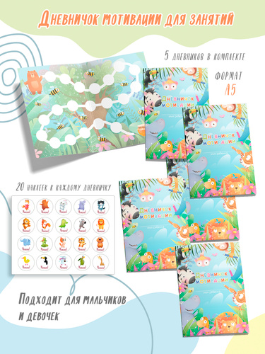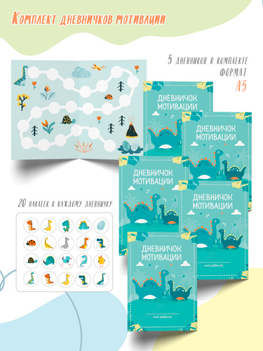 Дневник достижений "Мир динозавров" KoroBoom с детскими поощрительными наклейками для детского сада и школы, для оценки успеха малышей