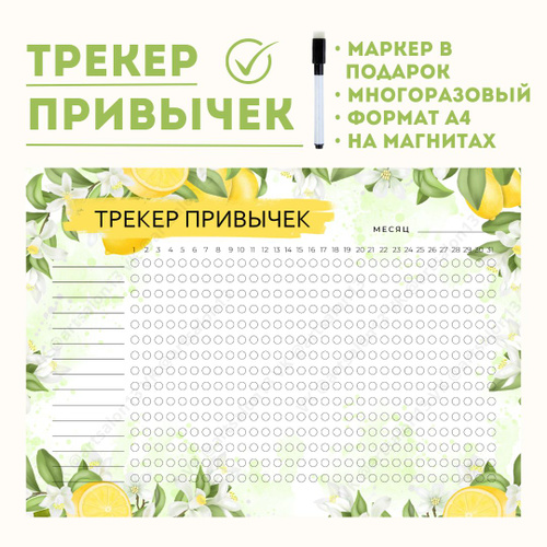 Трекер привычек магнитный на месяц ламинированный многоразовый планинг с маркером