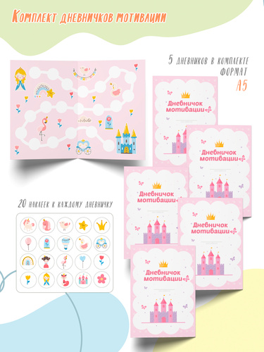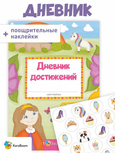Дневник достижений "Сказочная страна" KoroBoom с детскими поощрительными наклейками для детского сада и школы, для оценки успеха малышей