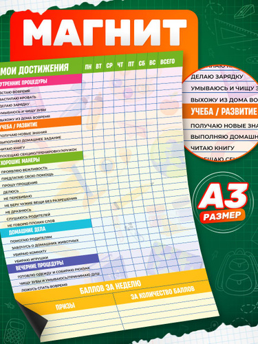 Детский магнитный планер достижений на холодильник с маркером, расписание дел, доска - мотиватор недатированный