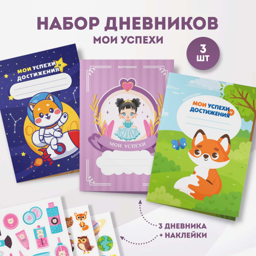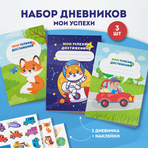 Дневник успеха для мальчиков с наклейками, набор 3 шт, Выручалкин.