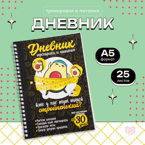 Дневник тренировок "Авокадо" на пружине, 25 листов