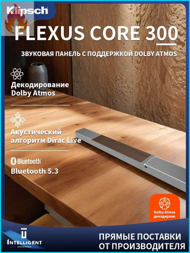Klipsch Flexus CORE 300 5.1.2 Dolby Atmos Soundbar, поддержка Dolby Atmos и Bluetooth, отделка под орех
