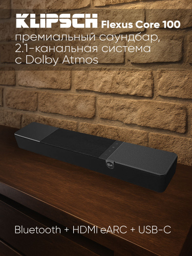 Саундбар Klipsch Flexus Core 100, 2.1 канальная система Dolby Atmos с Bluetooth, HDMI eARC, USB C, чёрный