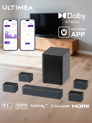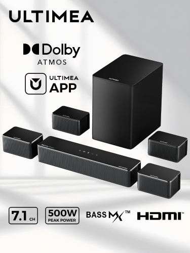 ULTIMEA 500W Саундбар с 7.1 Звуком, 6.5" Сабвуфер, 4 Проводных Динамика, Домашний Кинотеатр, Управление через Приложение (2025)