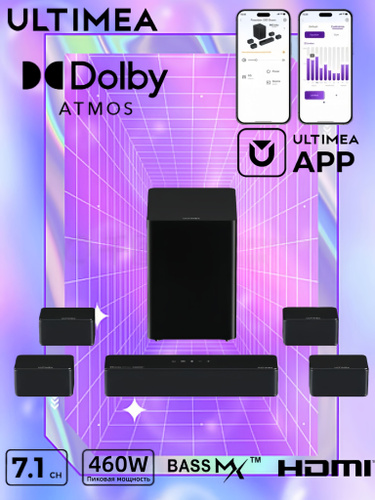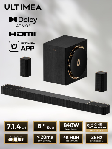 Саундбар ULTIMEA Poseidon D80 Boom 7.1,Полное погружение с Dolby Atmos,6.5" сабвуфер беспроводной сабвуфер,Мощность 500Вт, 4 колонки ,управление через приложение(Новинка 2025)