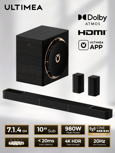 ULTIMEA Саундбар Skywave X70 Dolby Atmos 7.1.4, 980 Вт, 10" сабвуфер, флагманский звук для домашнего кинотеатра
