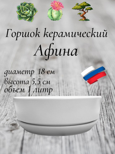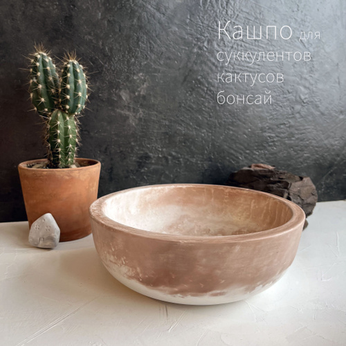 Кашпо, горшок для суккулентов и кактусов, растений, бонсай. Диаметр 19 см, высота 6,5 см, объем 0,8 л