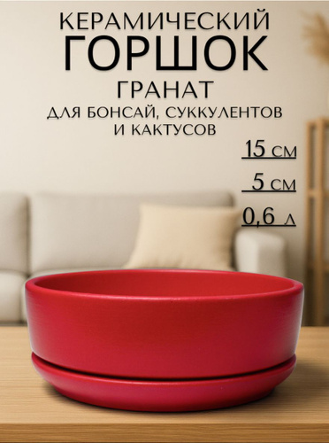 Керамический горшок "Афина Гранат" для бонсай, кактусов и суккулентов, диаметр 15 см, высота 5 см