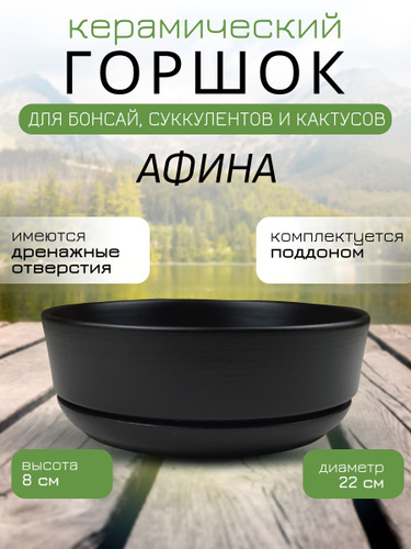Керамический горшок Бонсай - Афина для бонсай, кактусов и суккулентов, диаметр 22, высота 8 см, черный
