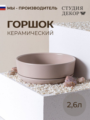 Керамический горшок с поддоном бонсай Латте, диаметр 26см, объем 2,6л