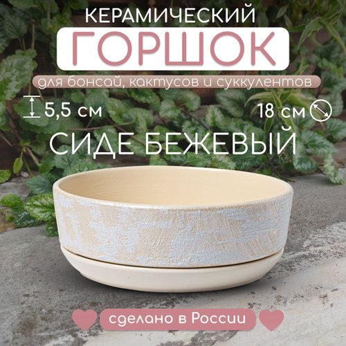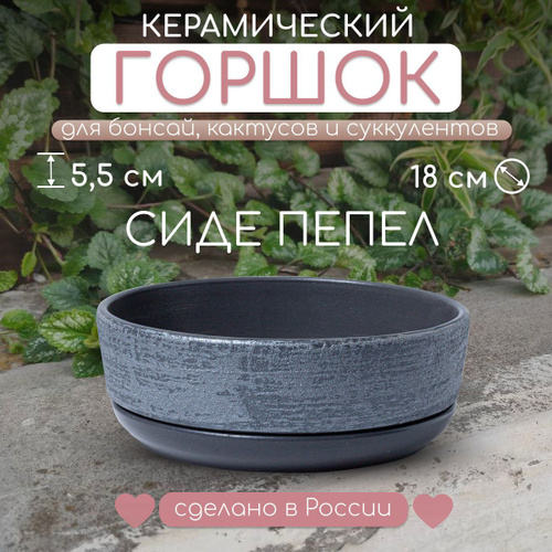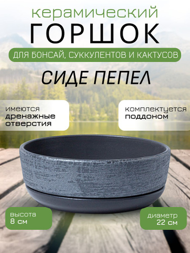 Керамический горшок "Сиде пепел" для бонсай, кактусов и суккулентов, диаметр 22 см, высота 8 см