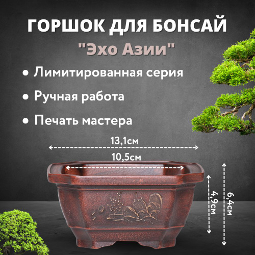 Горшок для бонсай "Эхо Азии", внешние размеры 13,1х 6,4 см., внутренние размеры 10,5х4,9 см.