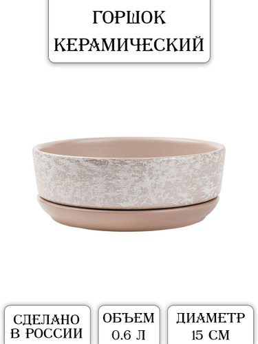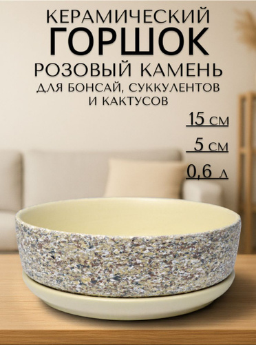 Керамический горшок "Розовый камень" для бонсай, кактусов и суккулентов, диаметр 15 см, высота 5 см