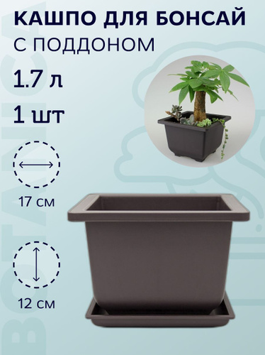Кашпо квадратное для суккулентов и бонсай с поддоном