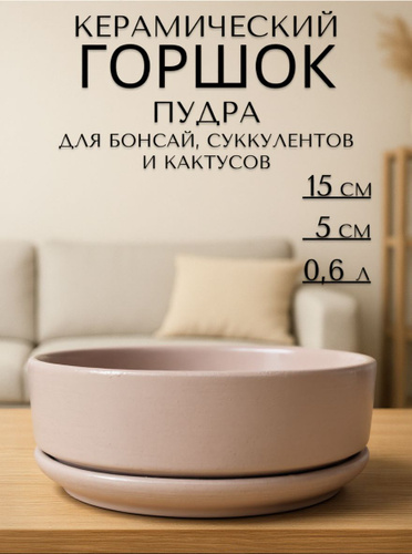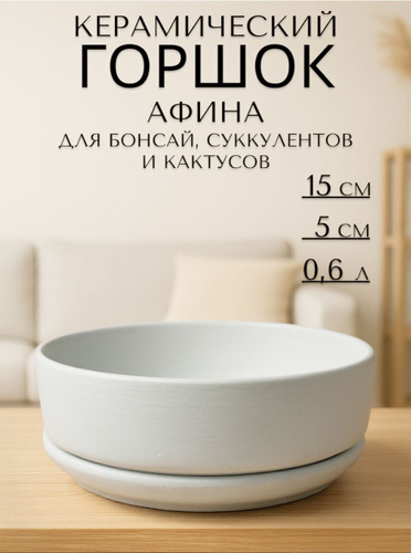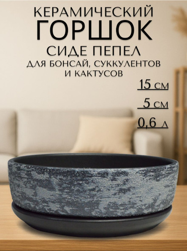Керамический горшок "Сиде пепел" для бонсай, кактусов и суккулентов, диаметр 15 см, высота 5 см