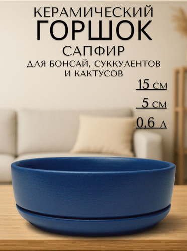 Керамический горшок "Афина Сапфир" для бонсай, кактусов и суккулентов, диаметр 15 см, высота 5 см