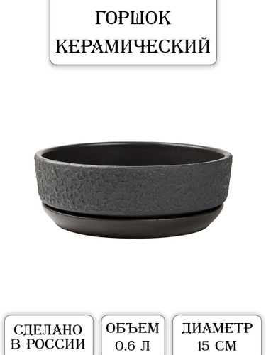 Керамический горшок "Бонсай - Афина" для бонсай, кактусов и суккулентов, диаметр 15 см, высота 5 см, черный