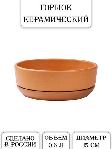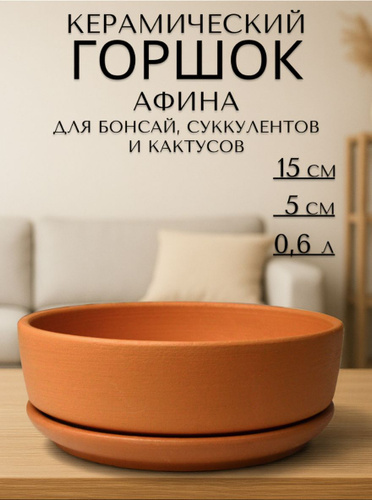 Керамический горшок "Бонсай - Афина" для бонсай, кактусов и суккулентов, диаметр 15 см, высота 5 см, терракот
