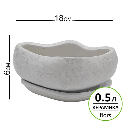 Горшок керамический 18x12x6 см, 0,5л, Капля светло-серый, для кактусов, суккулентов и бонсай