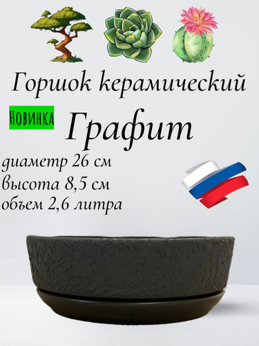 Керамический горшок "Графит" для бонсай, кактусов и суккулентов, диаметр 26 см, высота 8,5 см