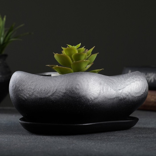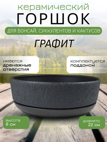 Керамический горшок "Графит" для бонсай, кактусов и суккулентов, диаметр 22 см, высота 8 см