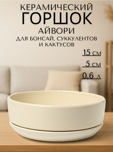 Керамический горшок "Афина Айвори" для бонсай, кактусов и суккулентов, диаметр 15 см, высота 5 см