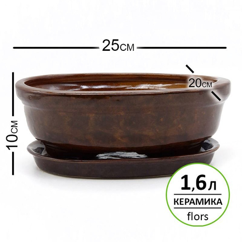 Горшок керамический 25x20x10 см, 1,6л, N 4 коричневый для кактусов, суккулентов и бонсай