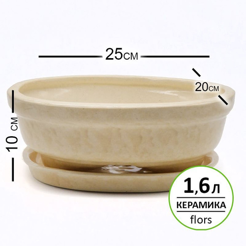 Горшок керамический 25x20x10 см, 1,6л, N 4 бежевый для кактусов, суккулентов и бонсай